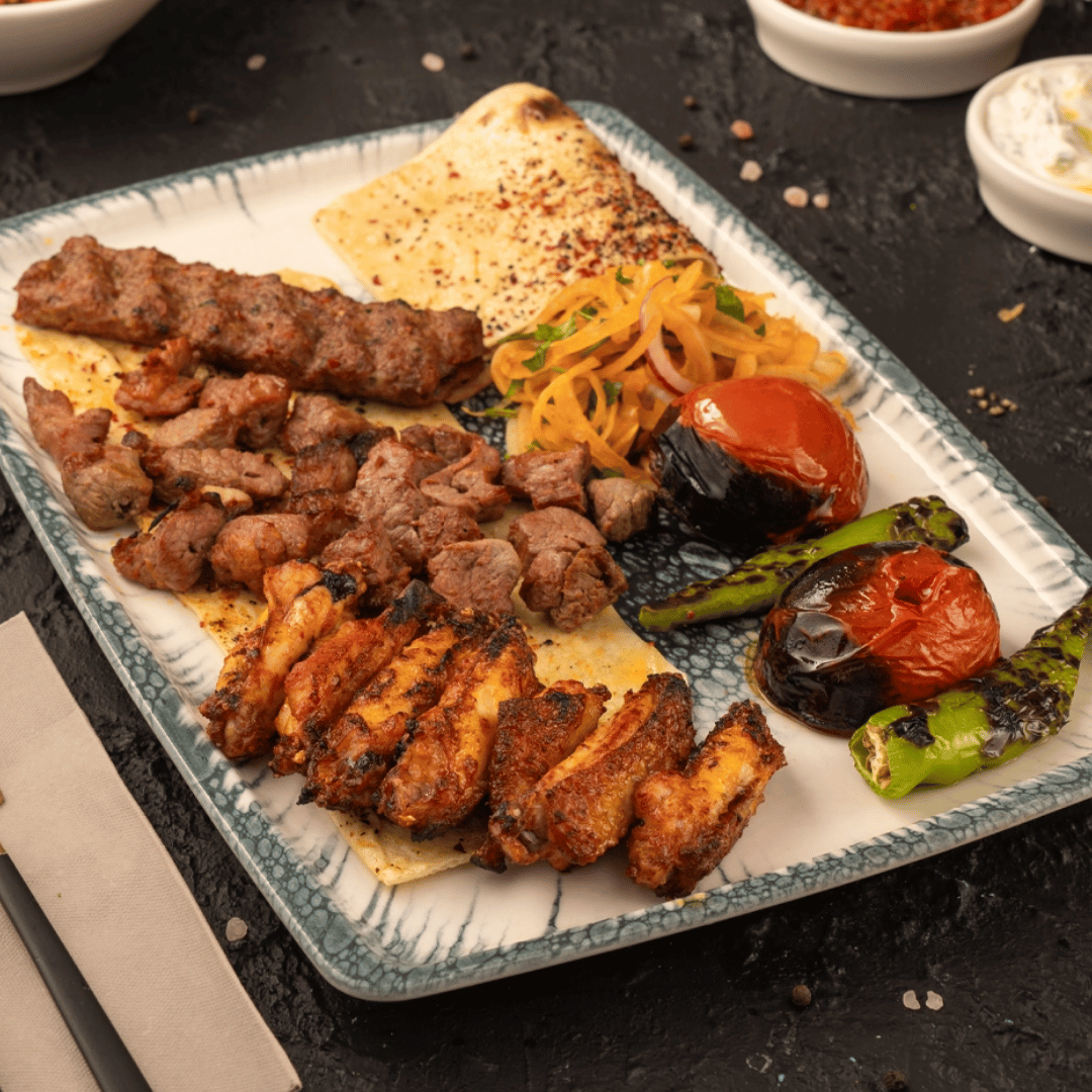 Şefin özel seçimiyle hazırlanan zengin karışık kebap tepsisi.