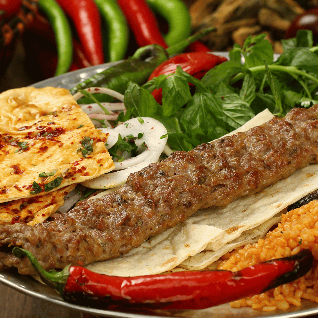Acılı ve baharatlı dana kıymadan hazırlanan klasik Adana kebabı.