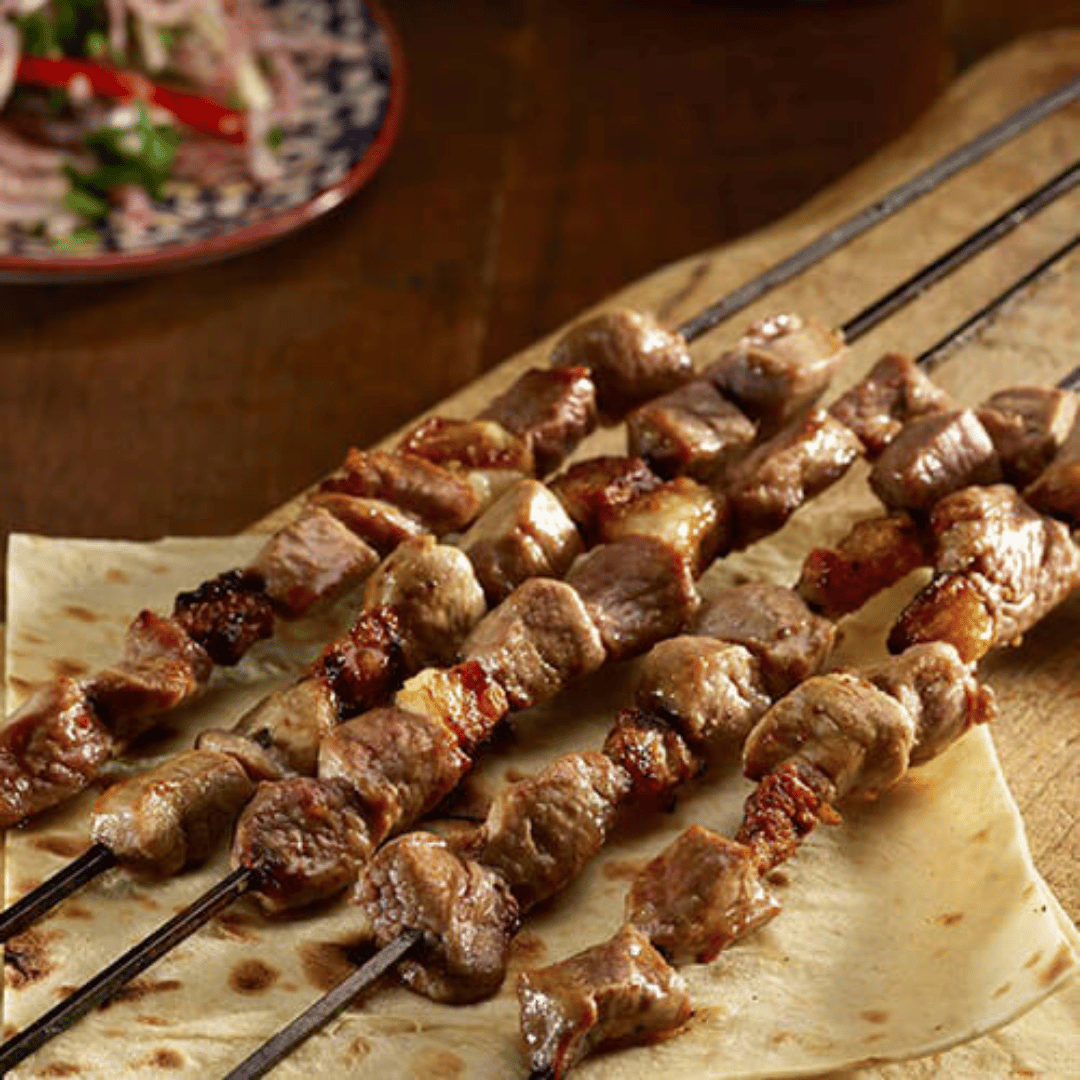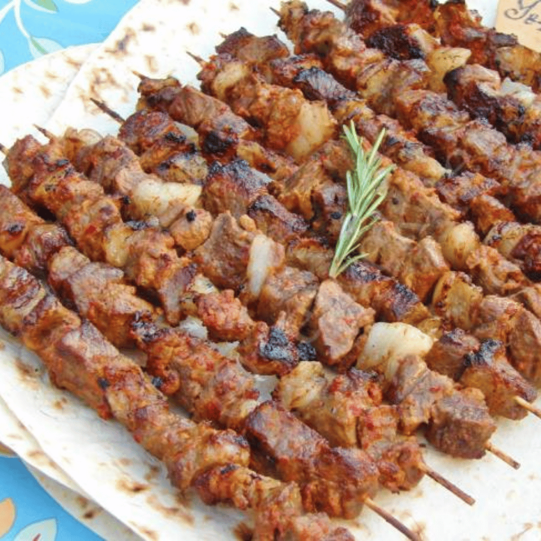Küçük kuşbaşı etlerle hazırlanan geleneksel şiş kebap.