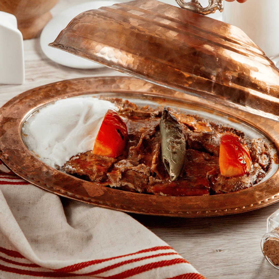 Izgara kıymalı kebabın yoğurt ve tereyağıyla buluştuğu, yumuşak dokulu ve yoğun aromalı bir ana yemektir.