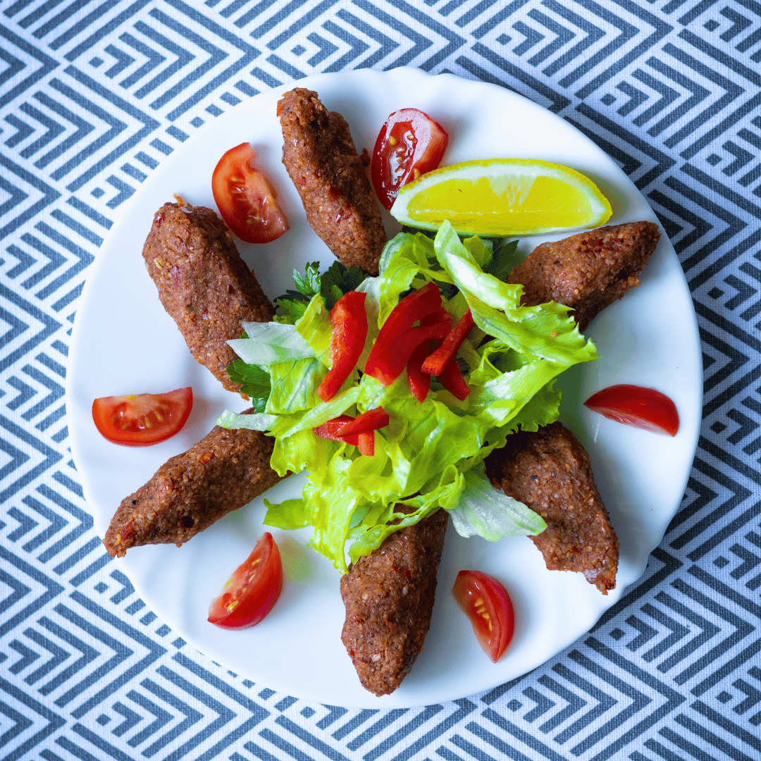 Baharatlı bulgurdan hazırlanan etsiz çiğ köfte.
