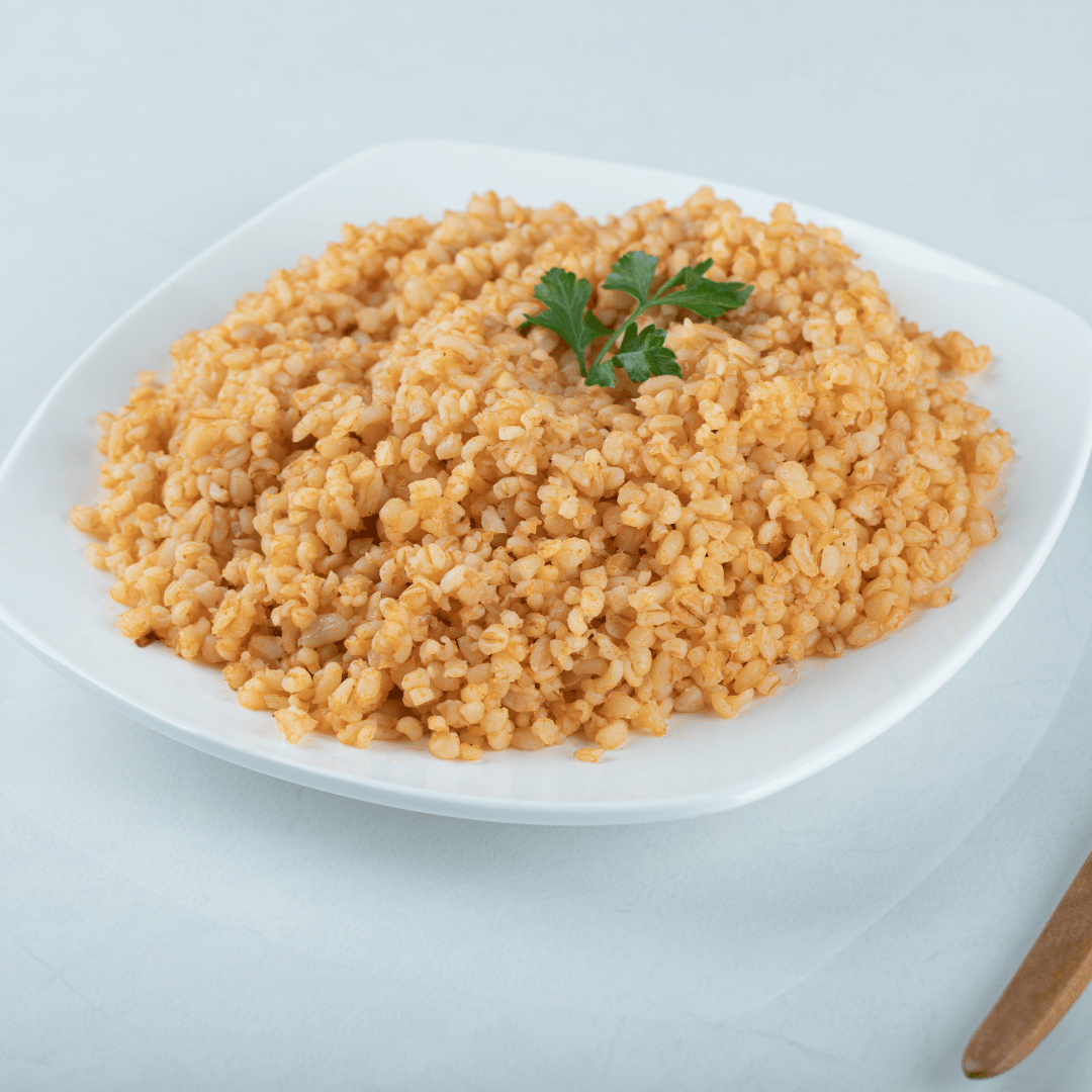 Tereyağıyla zenginleştirilmiş, tane tane pişmiş nefis bulgur pilavı.