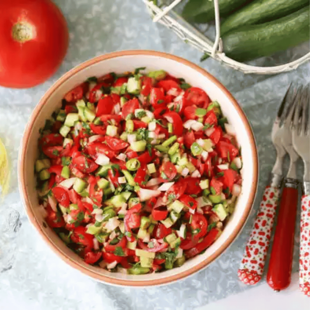 Taptaze domates, salatalık ve yeşilliklerle hazırlanan zamansız lezzet.